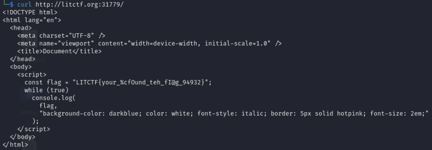 const flag = "LITCTF{your_%cfOund_teh_fI@g_94932}";