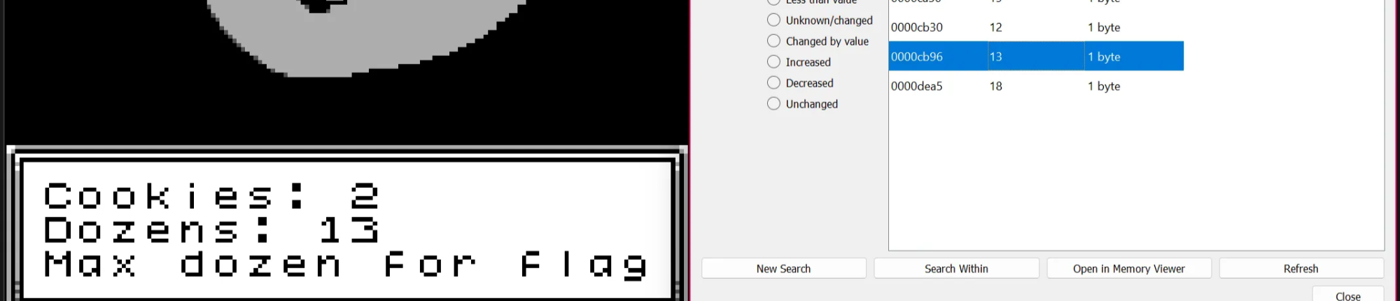 dozen = 13, and hit refresh so that the program doesn’t search for new addresses rather updates the already searched memory addresses.