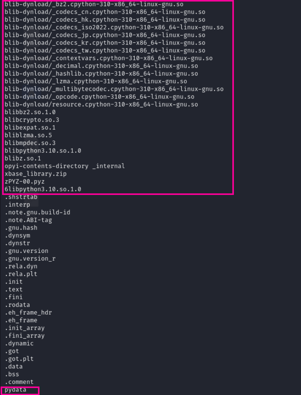 I ran strings on binary and noticed quite a lot of python related information like modules and python version like 3.10 .